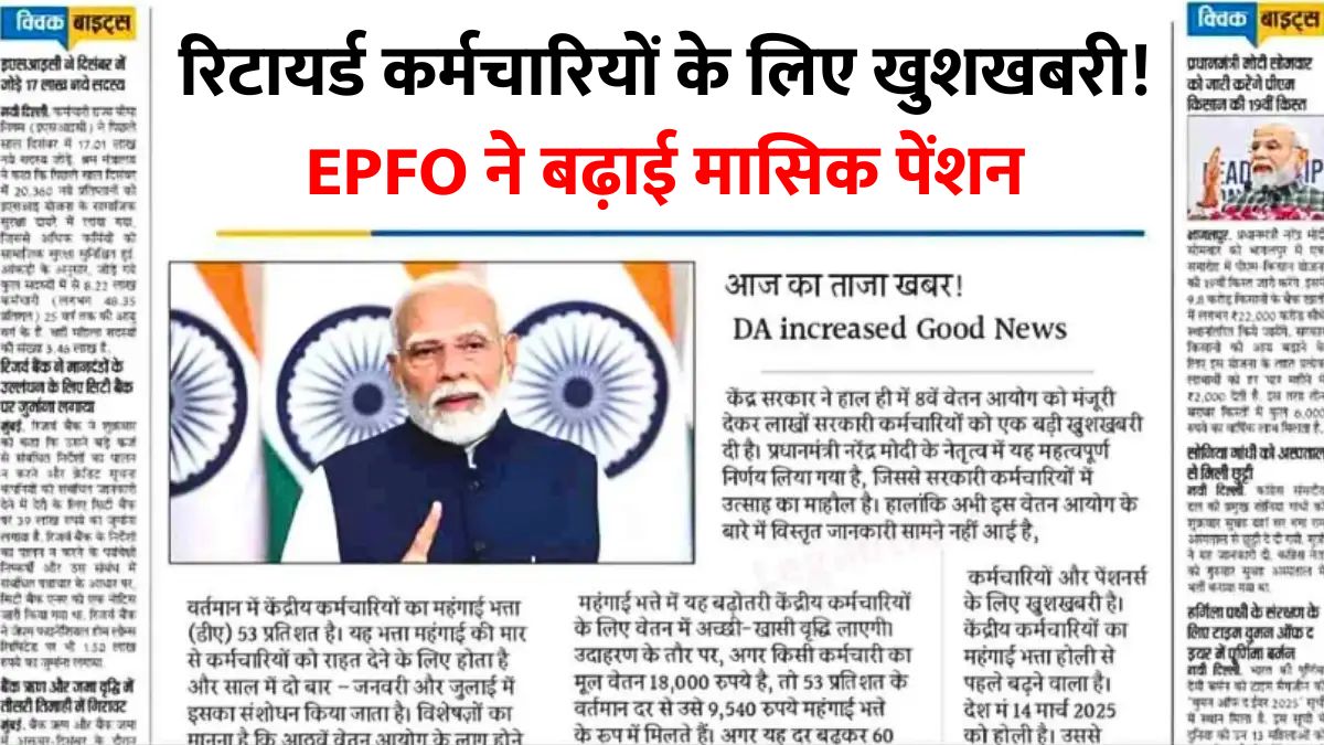 रिटायर्ड कर्मचारियों के लिए खुशखबरी! EPFO ने बढ़ाई मासिक पेंशन | EPFO Pension Update